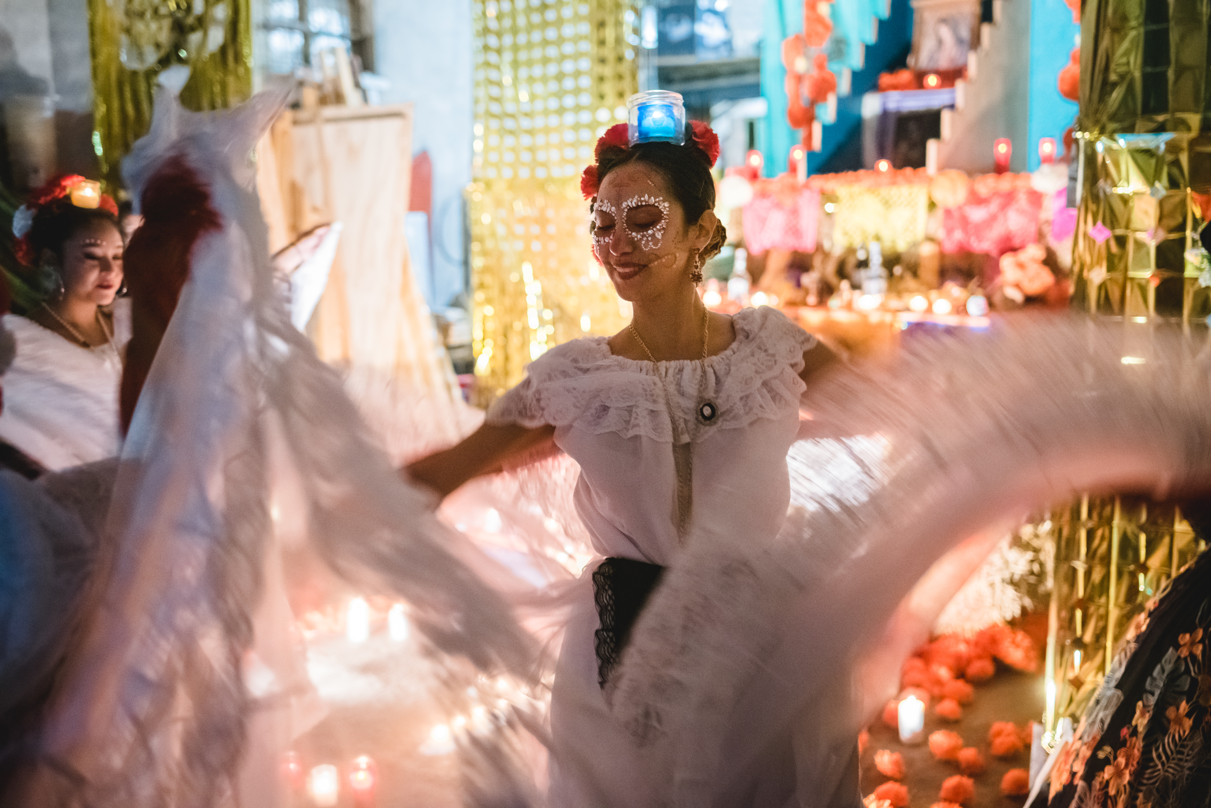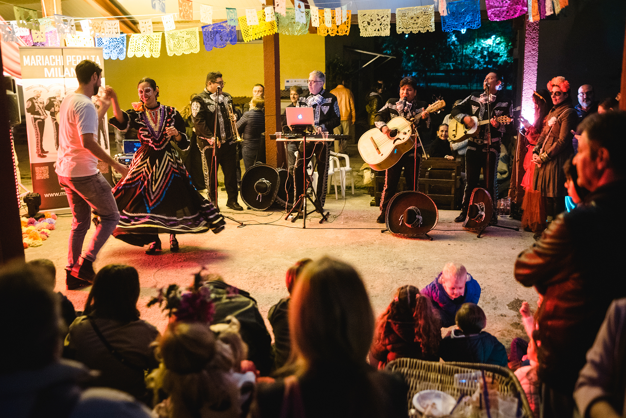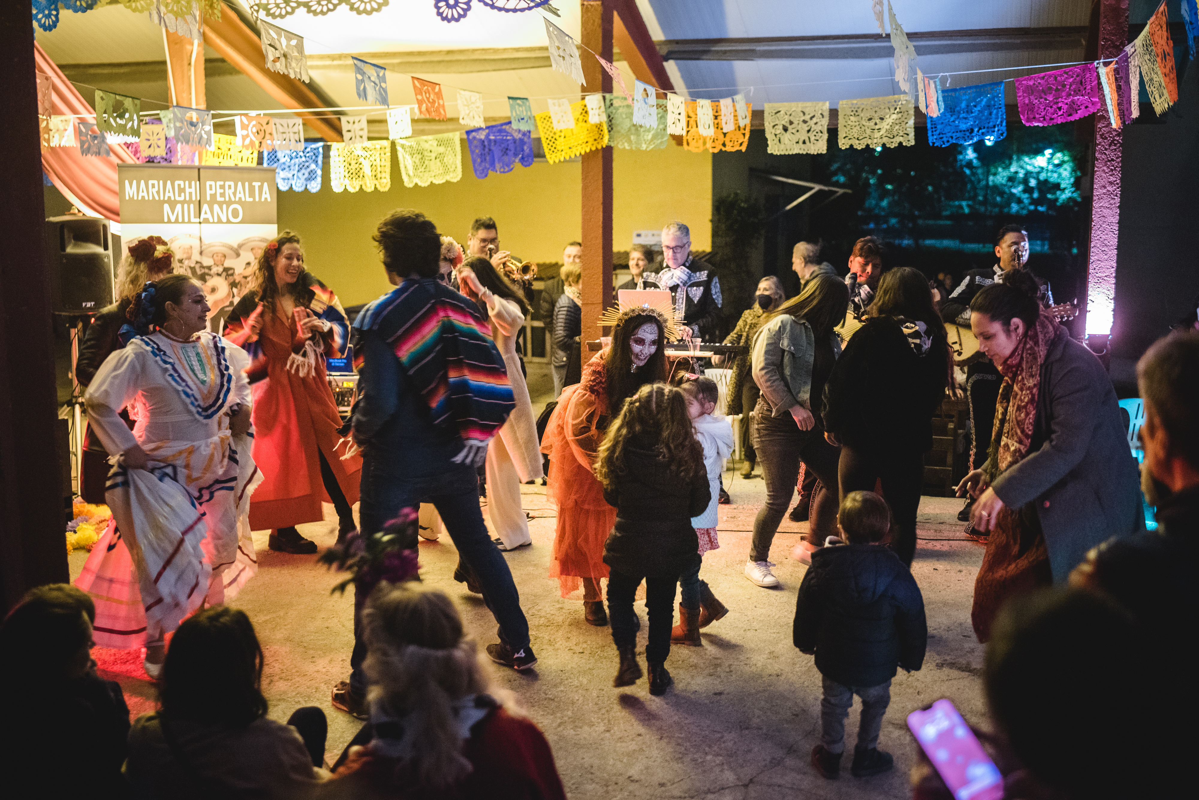 La comunità messicana si è riunita per celebrare il Día de los Muertos, il transitorio ritorno sulla terra dei parenti e dei cari defunti. È una ricorrenza molto antica e culturalmente ricca che converge in una festa e nell’Altar del Muertos, una costruzione simbolica frutto del sincretismo religioso attorno al quale si sono succeduti mariachi, danze, musica e piatti tradizionali messicani. L’incontro tra la comunità italiana, chiamata a partecipare attivamente all’altare portando foto dei propri cari, e quella messicana hanno dato origine a un momento unico.